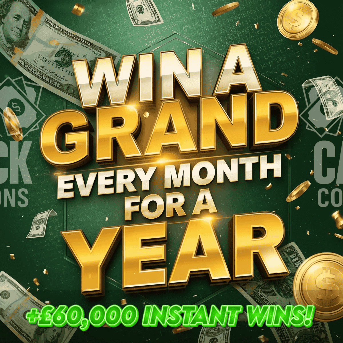 WIN £1000 EVERY MONTH FOR A YEAR! + £60,000 INSTANT WINS!